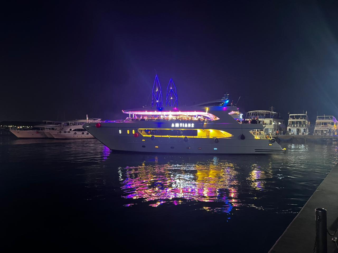 Enjoy an unforgettable night on the Red Sea with dinner, live shows, and amazing views